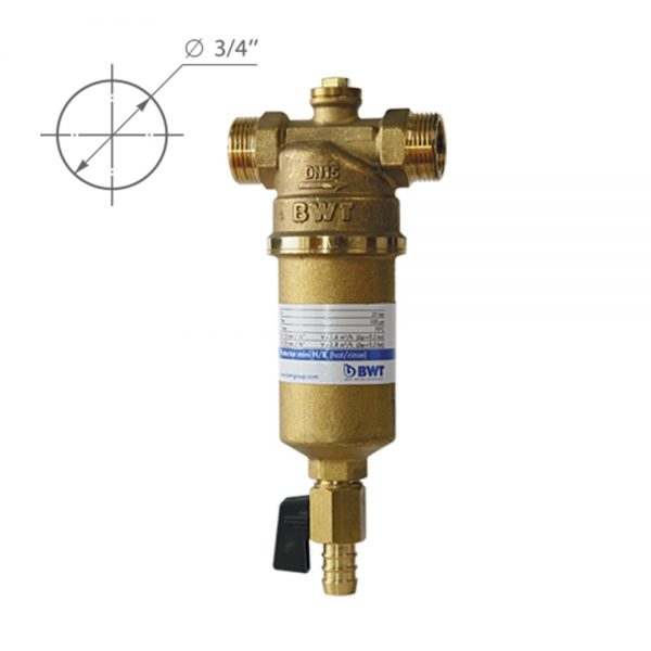 Магистральный фильтр BWT Protector Mini для горячей воды 3/4″, прямая промывка