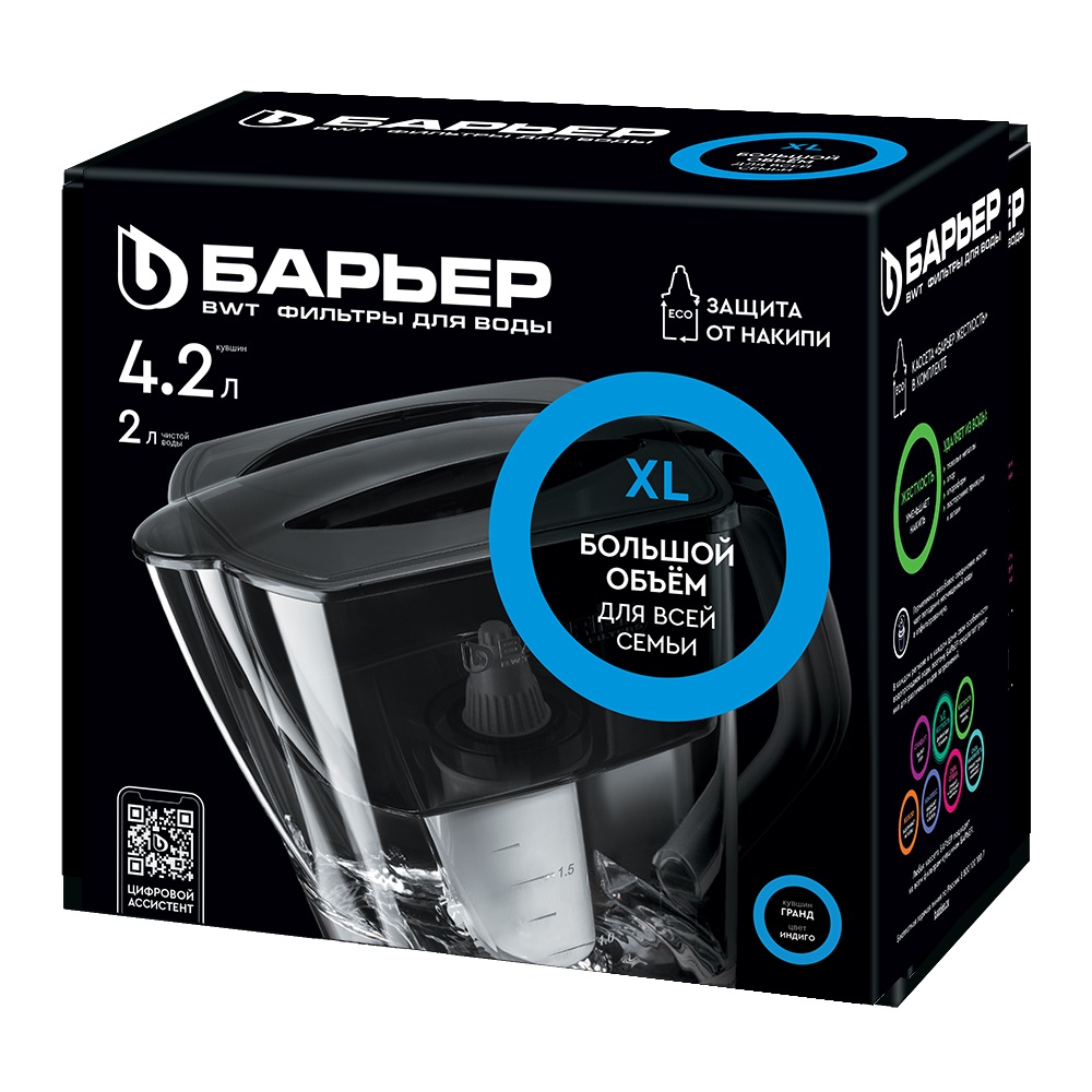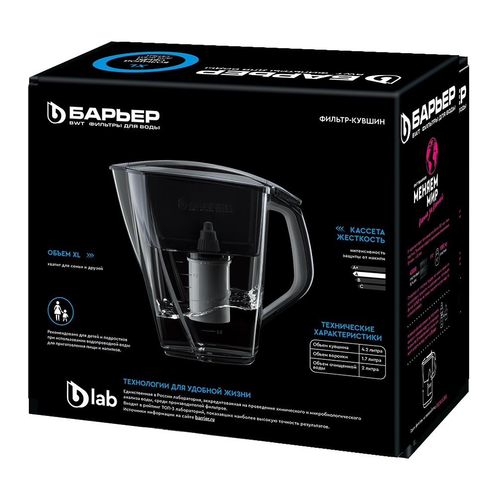 Особенность фильтров-кувшинов БАРЬЕР — надежное резьбовое крепление кассеты к воронке кувшина, что исключает попадание неочищенной воды из воронки в отфильтрованную воду.