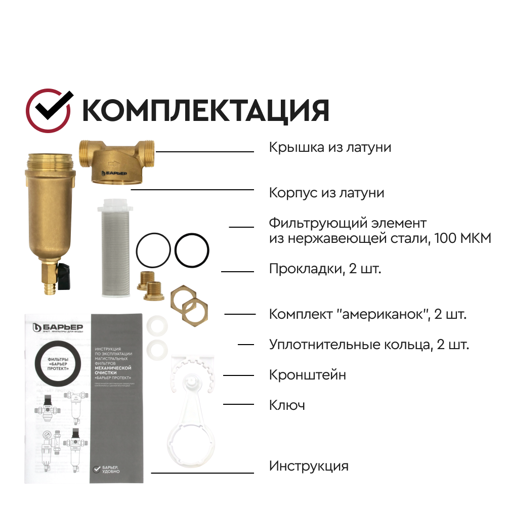 Компактный сетчатый фильтр БАРЬЕР ПРОТЕКТ в прочном корпусе из латуни предназначен для предварительной очистки горячей воды в квартире или частном доме. Устанавливается на магистраль с резьбой 1/2″ и эффективно задерживает механические примеси размером до 100 мкм: ржавчину, песок, ил, окалину и другие взвеси, снижая цветность и мутность воды.