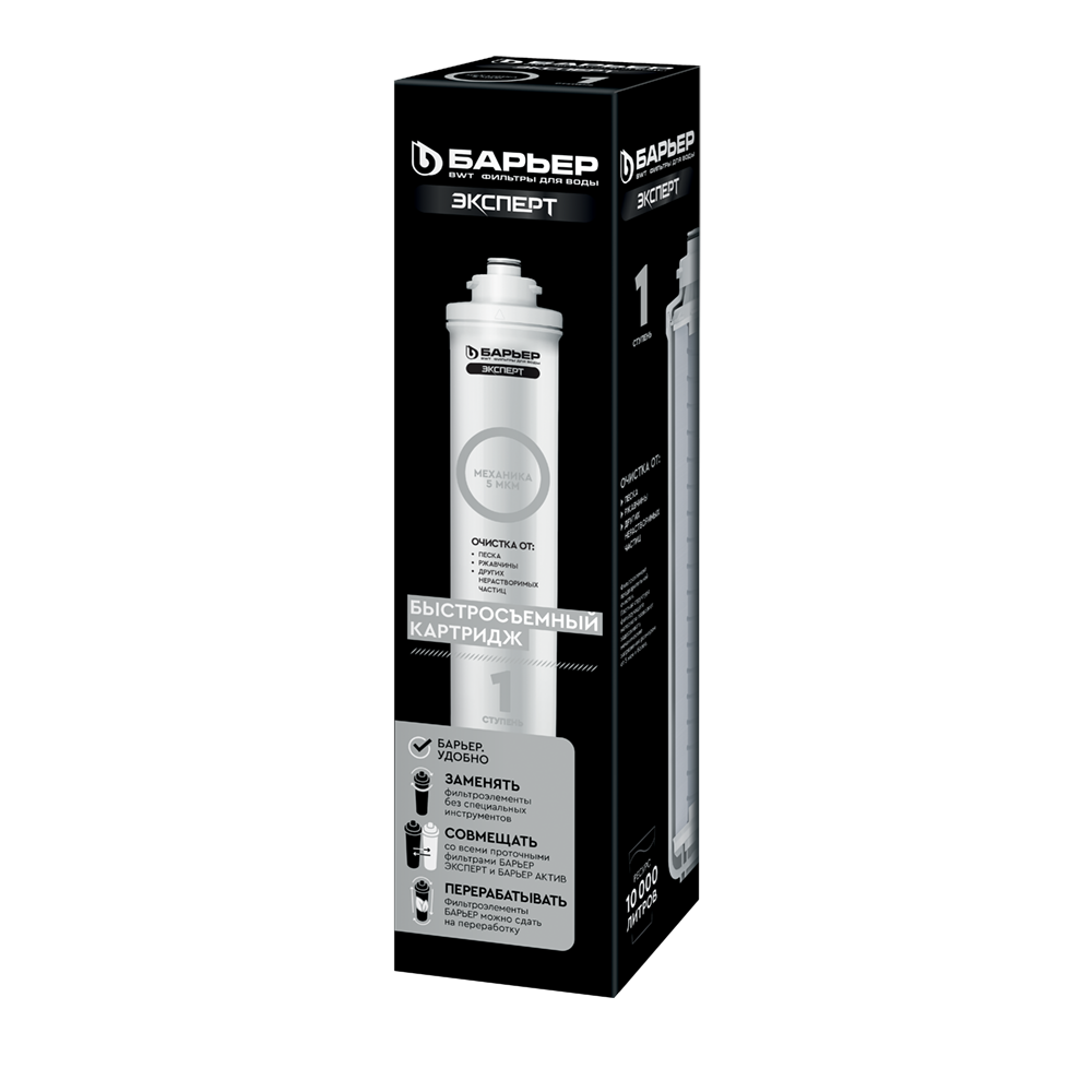 Картридж для фильтров «БАРЬЕР ЭКСПЕРТ». Обеспечивает эффективную предварительную очистку от механических загрязнений. Фильтроэлемент предназначен для установки в первую ступень трехступенчатых проточных водоочистителей «БАРЬЕР ЭКСПЕРТ».