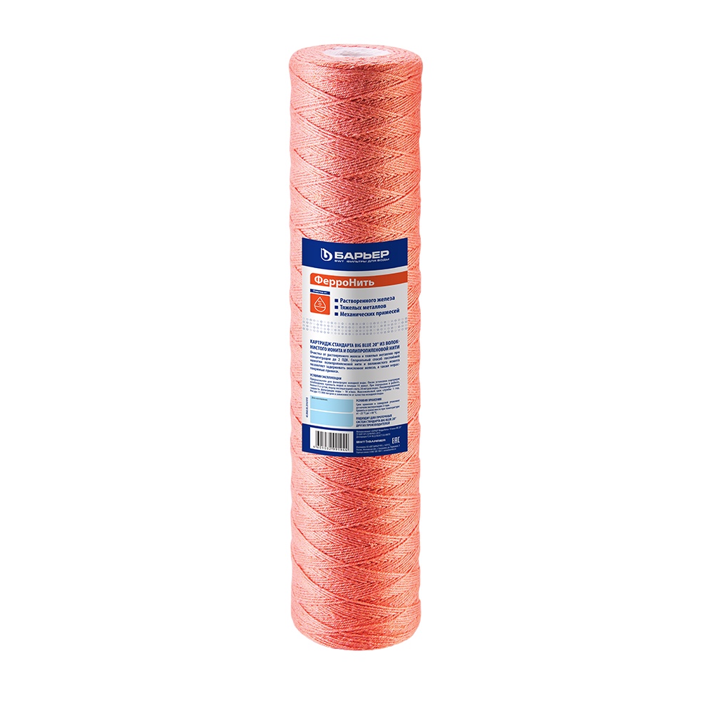 «ФерроНить ВВ 20» – это картридж для очистки воды в магистральных фильтрах стандарта Big Blue 20”. Изделие хорошо справляется с удалением железистых примесей. Эффективно удаляет из воды растворенное железо, тяжелые металлы, механические примеси.