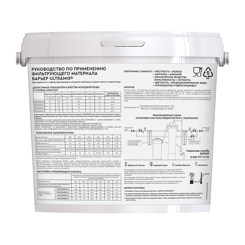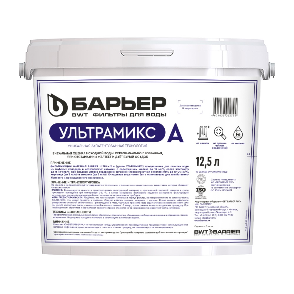 Засыпка BARRIER ULTRAMIX®А предназначена для использования как в централизованных, так и нецентрализованных системах водоснабжения, включая родники, колодцы и скважины. Очищенная вода может быть использована как для хозяйственно-бытовых нужд, так и для промышленных целей. Если же нужно получить питьевую воду — рекомендуется установить систему обратного осмоса.