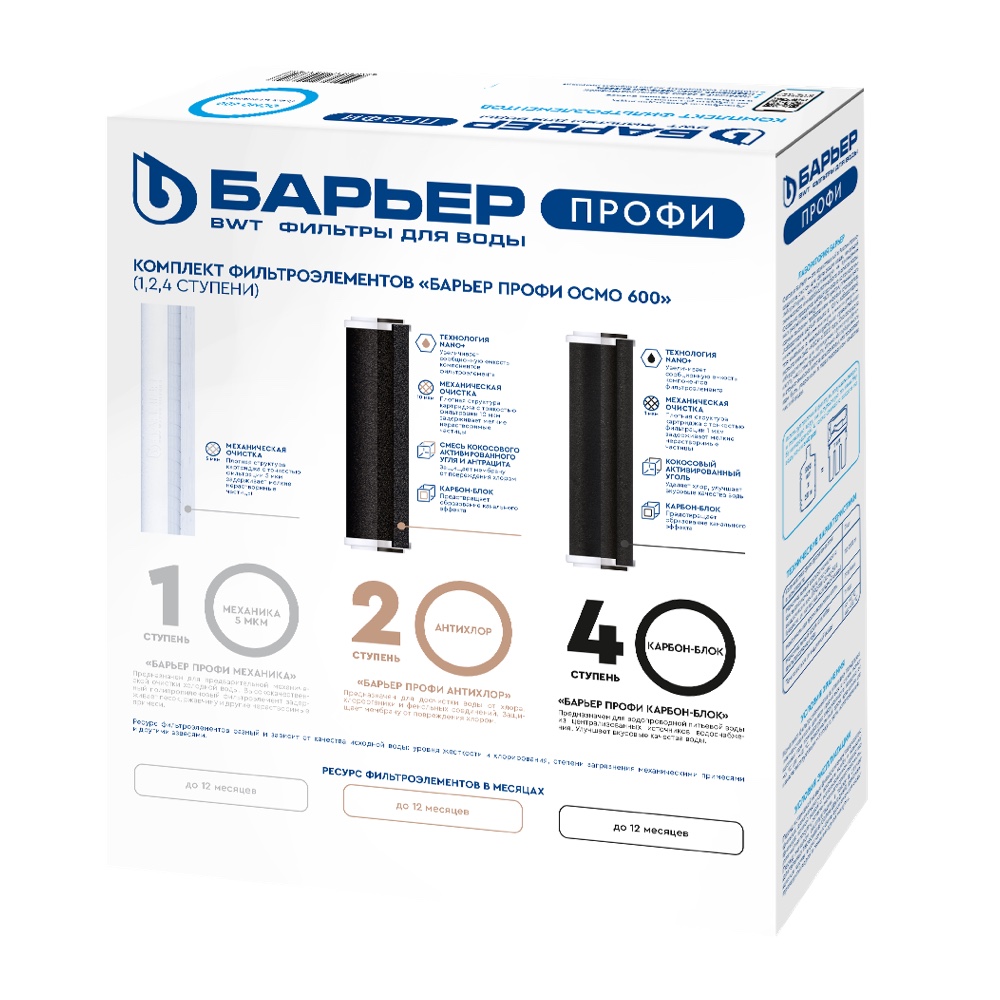 Комплект фильтроэлементов Барьер ПРОФИ Осмо 600 (1,2,4 ступени)