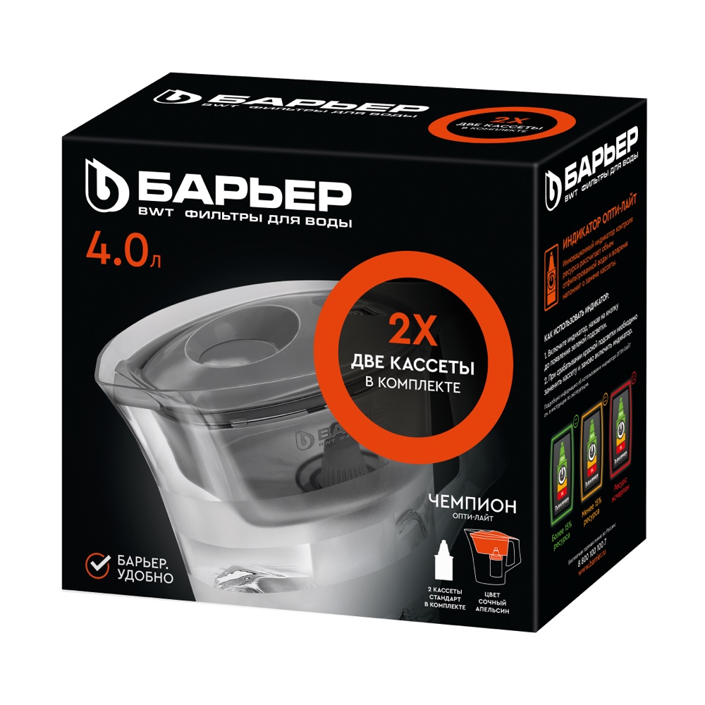 Герметичная резьба исключает попадание загрязнений в отфильтрованную воду. Ресурс каждой кассеты 350 литров.