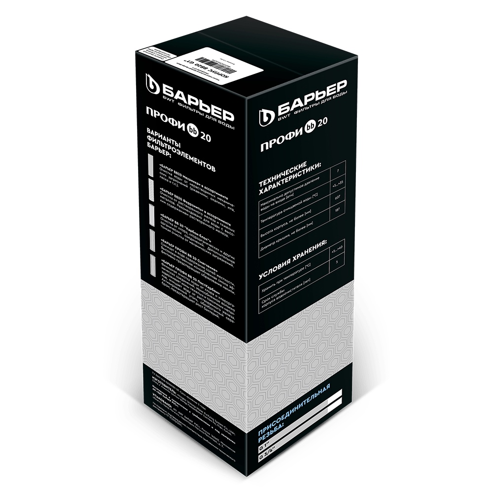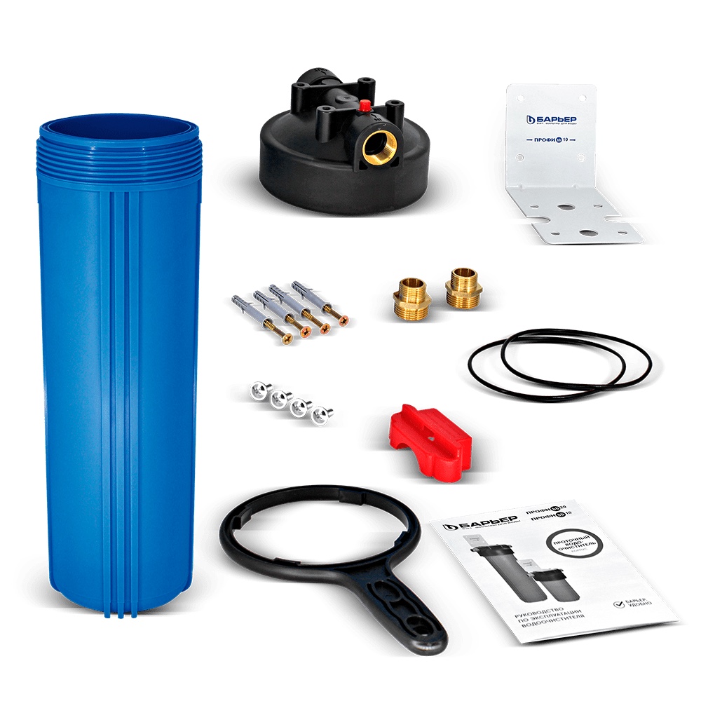 Чтобы повысить эффективность фильтрации, можно установить несколько магистральных фильтров Big Blue 20 с различными картриджами последовательно. Например, можно использовать два фильтра подряд: первый — корпус ВВ20 с картриджем «Профи ВВ20 Механика» который будет защищать от песка, ржавчины, глины и других механических примесей; второй — корпус ВВ10 с картриджем «ФерроНить 10 мкм BB 20» для удаления нерастворенного железа.